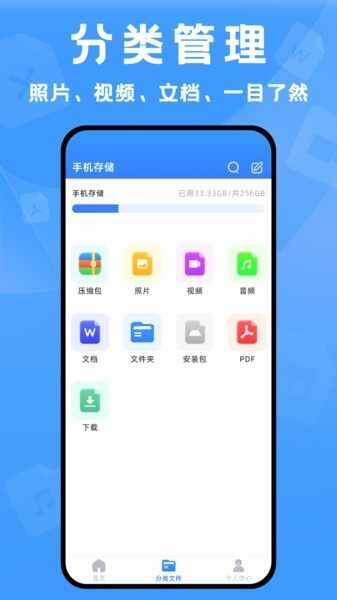 3.智能管理:具备智能管理功能,用户可以方便地查(cha)看手机中的所有压缩文件(jian),支持分类、搜索等操作(operation),使文件(jian)管理更加便捷(jie)。