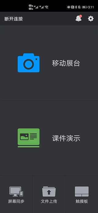 2、连接后就可以(jiukeyi)在手机进行选(xuan)择,如果是要同(tong)步(bu)录屏,can用【移动展台】功能;