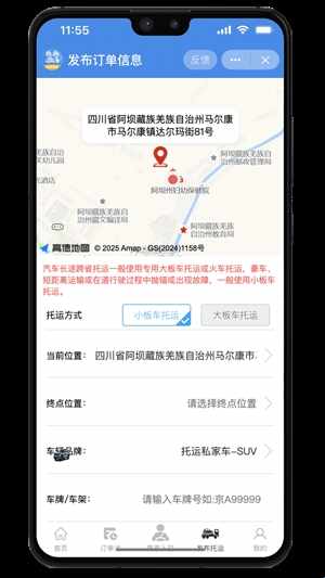4.在发布托运页面,就能自行(xing)选(xuan)择托运方式、位置、车型等信息发布;