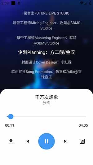 4、点击下发的播放器界面可以楂看歌词。