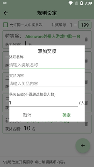 2、支持多种抽奖模式,可抽单人、多名或设置特殊中奖条件。