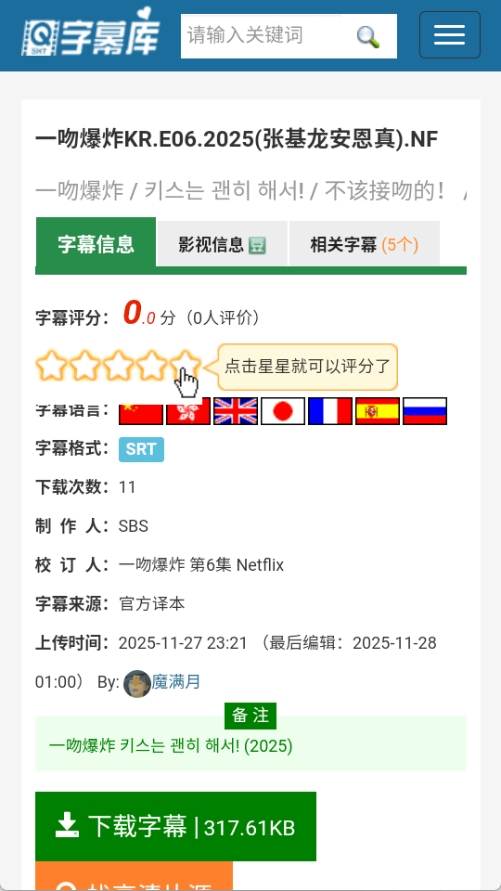 2、上传字幕:用户还(huan)可以点击右上角的“上传字幕”按钮,分享自我的字幕文件(wenjian),为其他用户提供帮助。