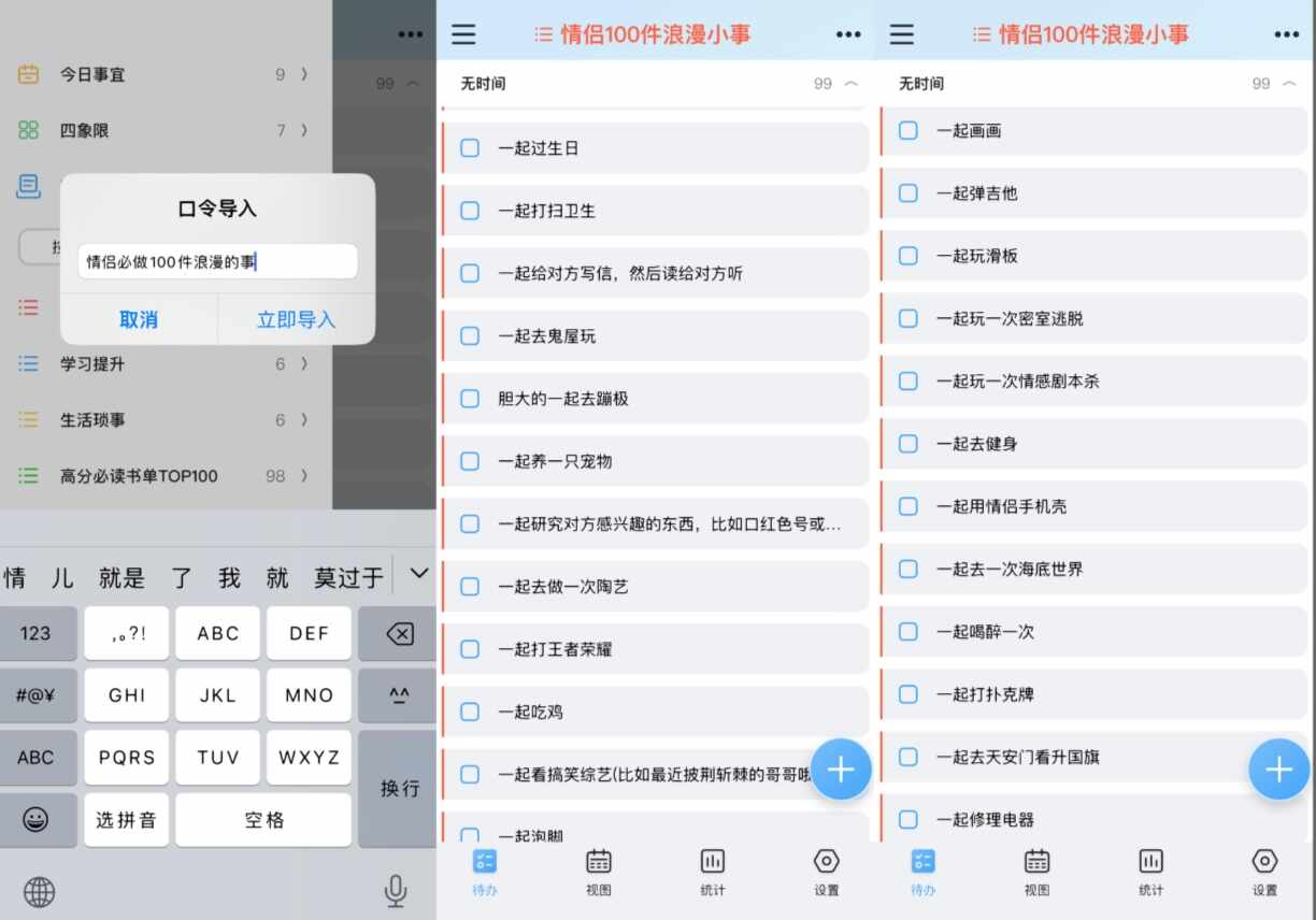 最好用的清单导入功能,這個功能在其他软件上都没有见过,真的解决我想要清单的迫切希望。我就是在知乎上看到(kandao)一条很好用的清单,根据博主的口令一键导入了所有清单,不用(Need not)自己手动输入真的太香了。导入后可以根据自己的时间设定整理这条清单。