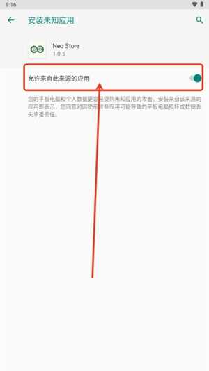 2、点击开启允许来自此来源的应用。