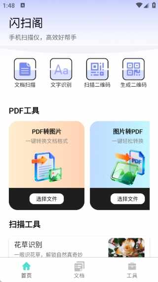 2、实现文档扫描、文字(Word)识别与二维码扫描生成,支持PDF与图片格式互转,满足办公场景下的文档处理诉求。