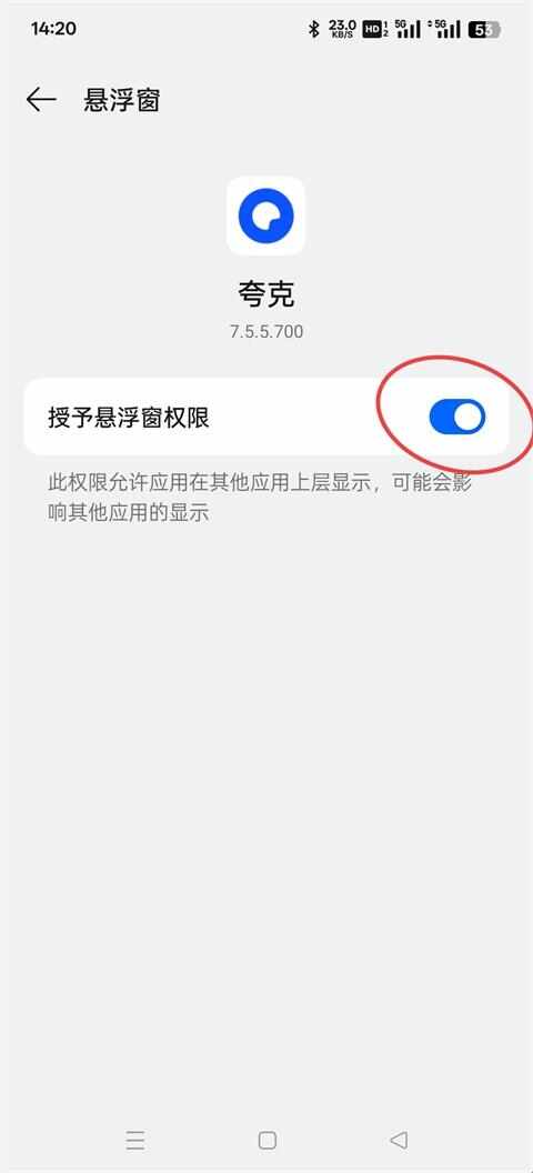 6、找到手机中的夸克app,授予悬浮框的权限。