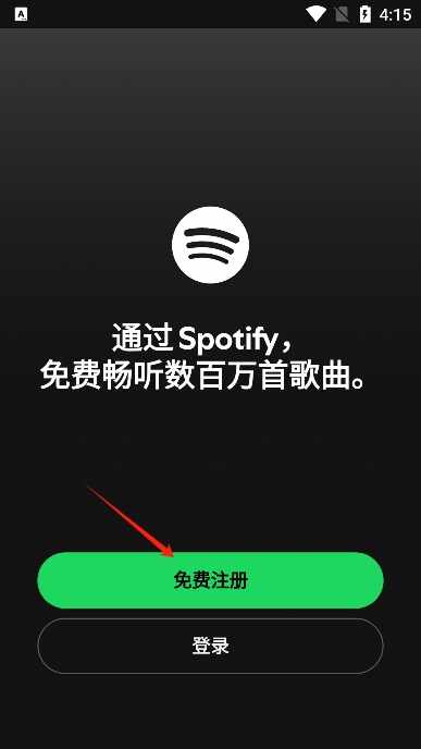 1、在本站下载并打开声破天Spotify,点击免费注(zhu)册(ce);