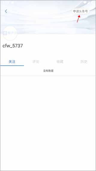 2、会看到用户(hu)关注的人、评论等数据(shuju),点击右上角的“申(shen)请(qing)头条号”。