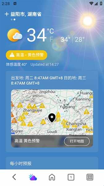 3、然后在天气界(jie)面就可(ke)以(yi)看到(kandao)你所(suo)在城市(shi)的天气预报情况啦