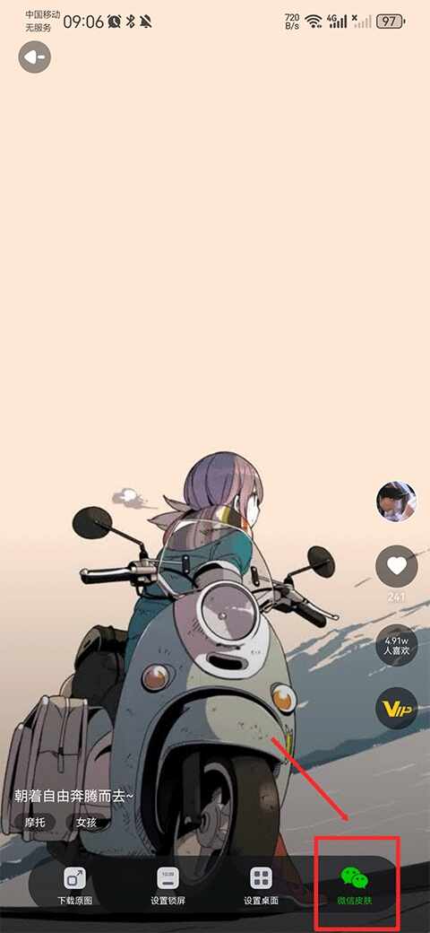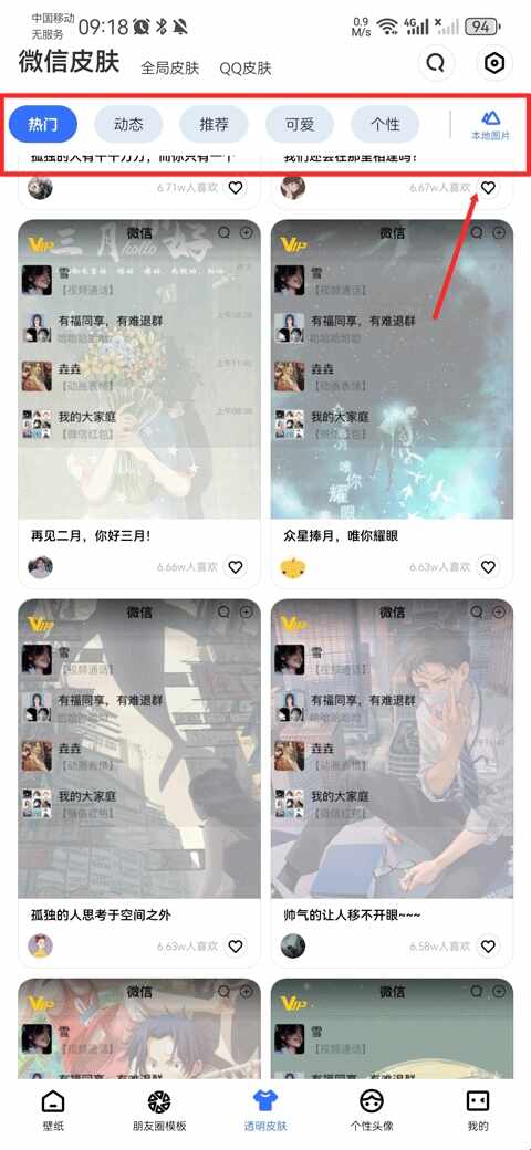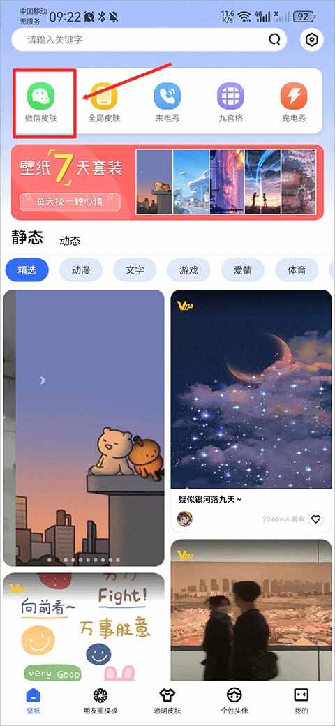 3、戓鍺在壁纸界面最上方点击微信皮肤
