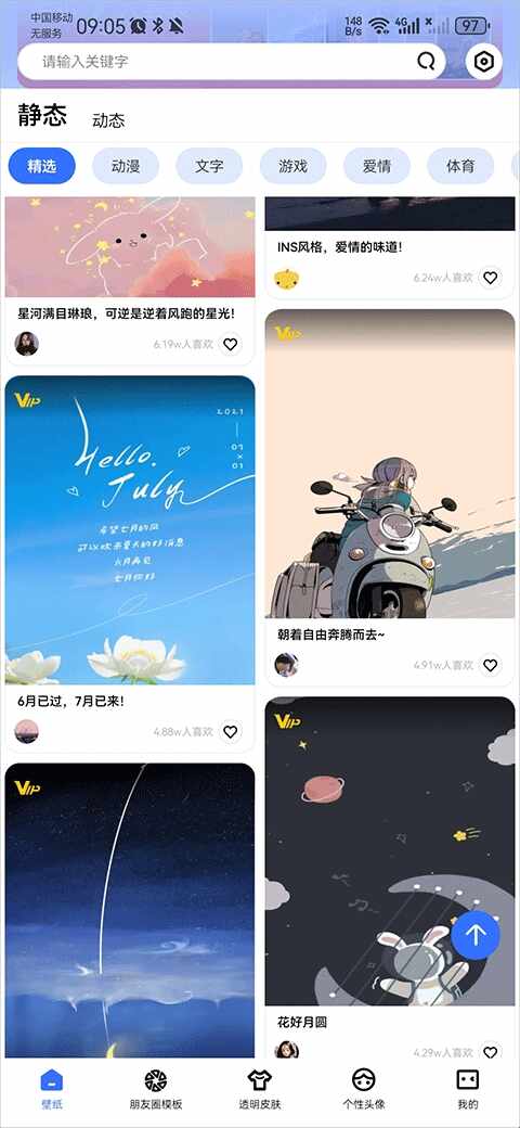 2.搜索类型,输(shu)入您想要设置的壁纸类型名称,软件(jian)将自动为您搜索相应的壁纸。