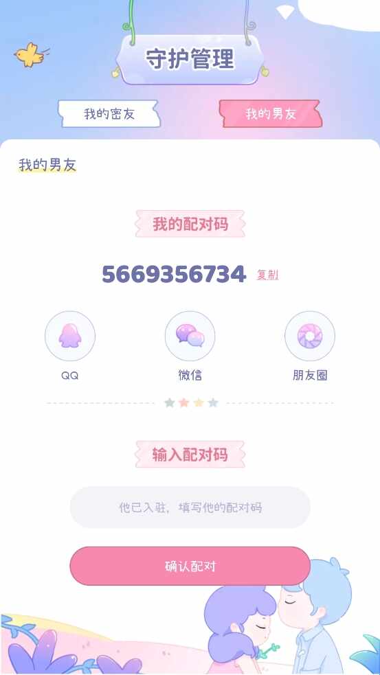 5、点击【我的守护板块】还能(huanneng)邀请密友、男朋友进行配对哦,让你男朋友更直观的了解你的情况(Condition)