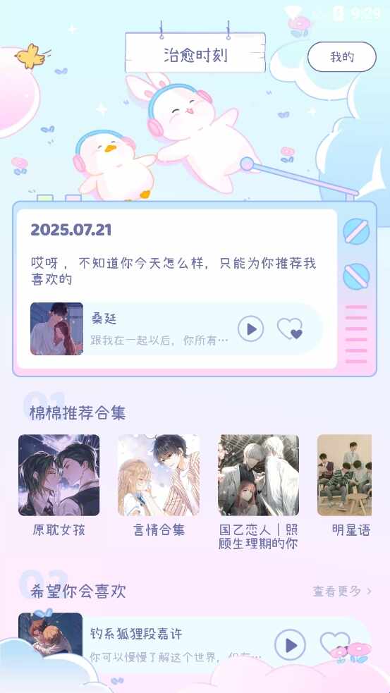 3、点击主页的风铃即可(can)(ke)收听治愈(zhiyu)呵护音哦
