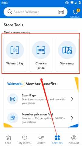 4、还能在“services”里(li)面看到一些专(zhuan)属于沃尔玛的专(zhuan)属服务,扫码等。