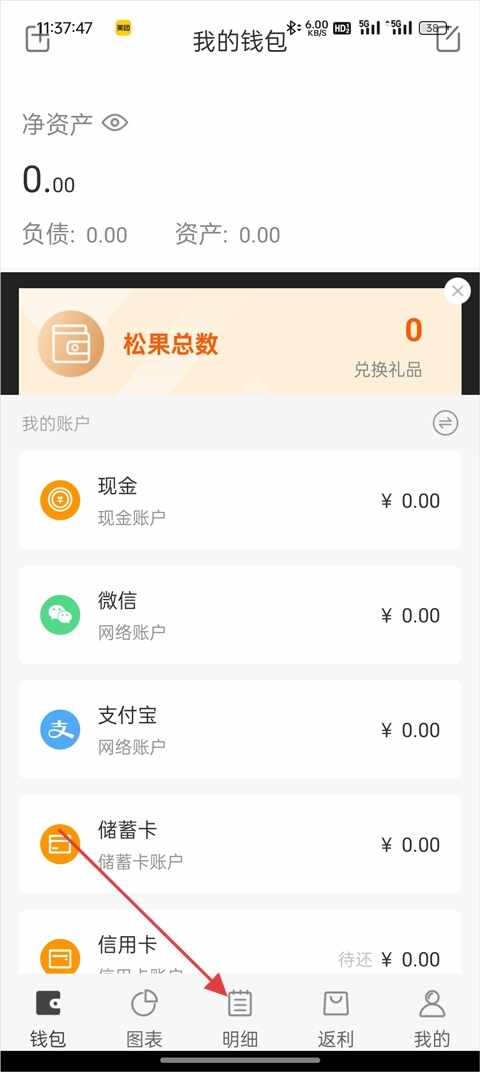 1、进(jin)入软件后点击下方导航栏的明细功能