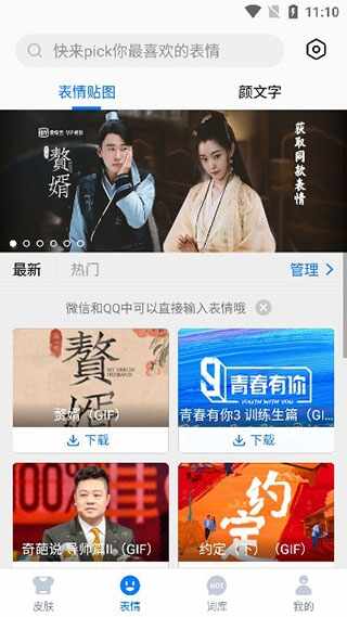2、在皮肤界面用户能够看(kan)到当下最为热门的皮肤,可以让你的输入更加美观;
