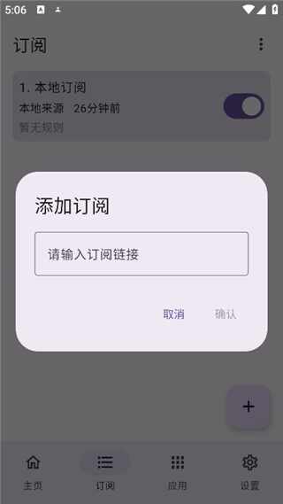 4、在点击右下角+号输入订阅链接,订阅链接如下;
