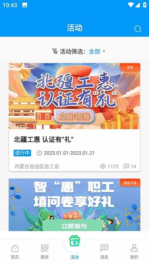 2、是内蒙古自治区总工会推出的一款面向全区及各地方工会会员的服务平台,是职工享受工会服务的网上平台。