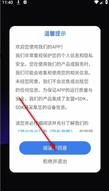 1、打开VideoCollage软件,点击同意隐私保护