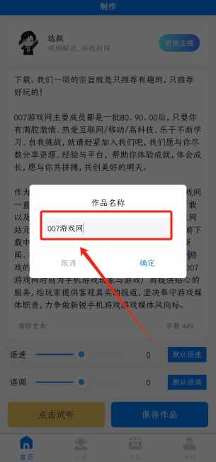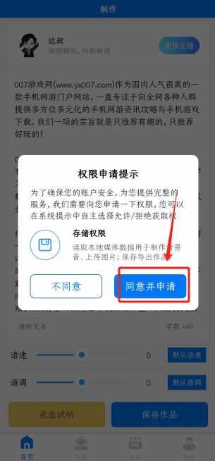 3、觉得满意的配音可以点保存作品,需要同意权限。