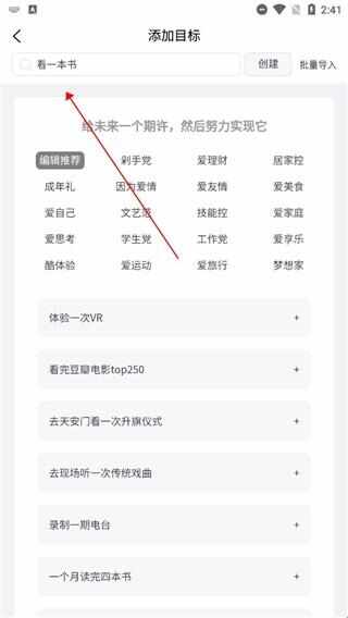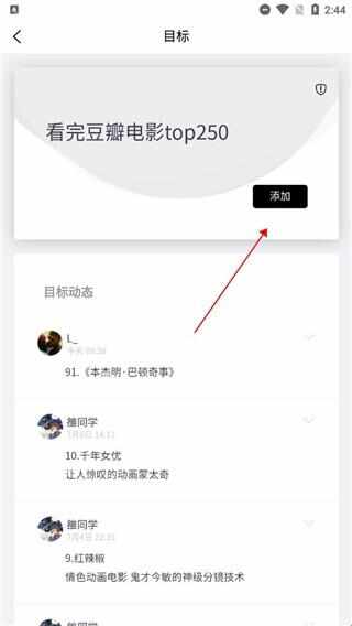 2.可以向用户推荐一些热门目标,点击目标快速添加。