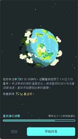 通过专注获得“星尘币”,解锁更多星球(the planet)种子,演化出各种不同的星球(the planet)