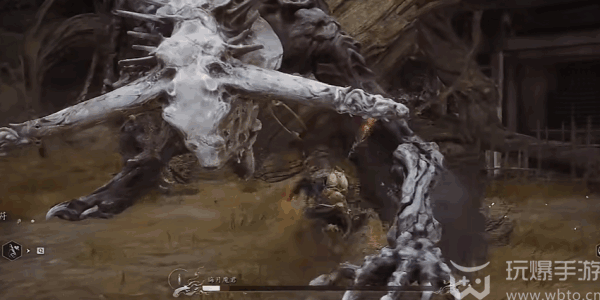 3、当他跳起来时,直接躲开并朝外围走,然后趁落地空档输出伤害(hai),不断地跑到他的脚后方或侧边进行输出,不要站在头部附近(fujin)。