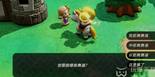 塞尔达传说智慧的再现强势号角获得方法:1、先和NPC进行对话,在对话当中选择长距离赛道。