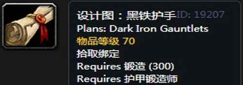 黑铁护手属性(shuxing):紫色品质板甲手套,495护甲,+16耐力,+12敏捷,+28火焰抗性。