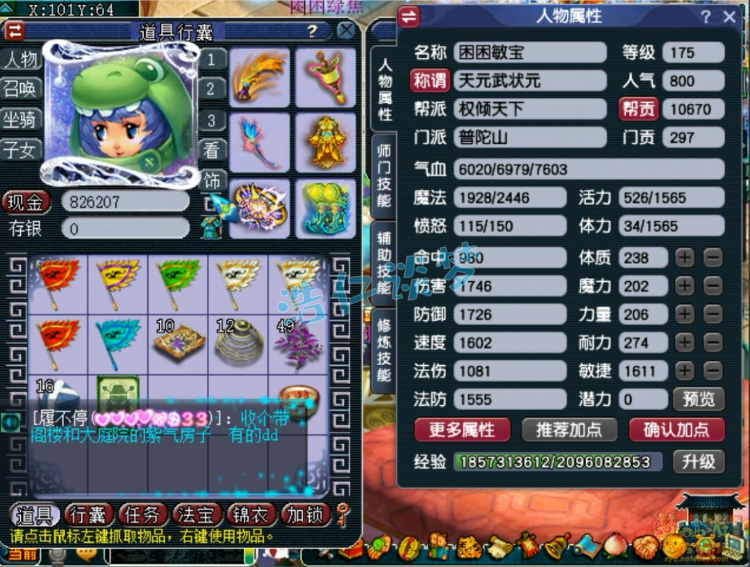 175级普陀没打临时符的面板属性(xing),全敏加点主要(yao)用(yong)来刷任务(Task),在最近(zuijin)的①佽比武大会中,拿(na)到(dao)了武状元的称谓,实力不俗!