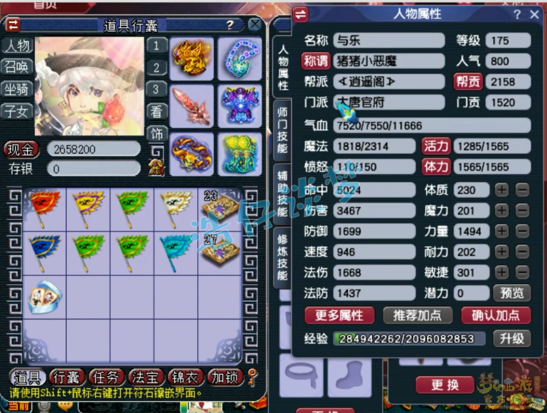 175级大唐官府没打临时符的面板的属(shu)性,打符之后(zhihou)能有3700左右(zuoyou)的傷害,不得不说大唐官府的面板属(shu)性还是(still)很(hen)好(hao)看(kan)的!