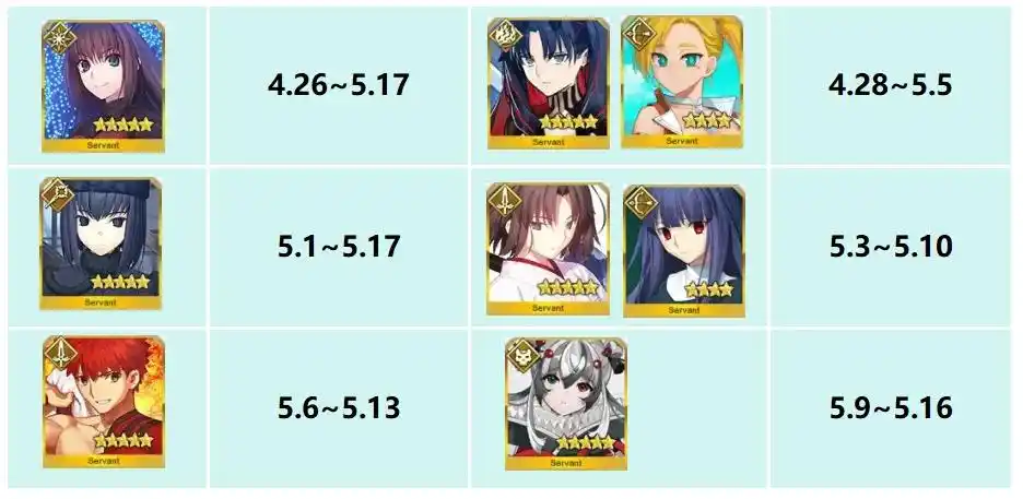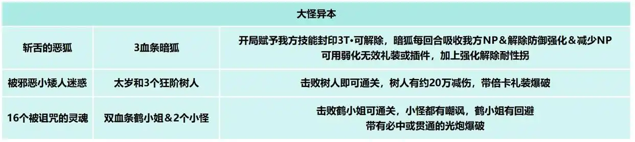 以上是本次活动的加成(addition)从者,如果有仇凛或者卡莲的话,可以在本次活动刷大部分怪异本。