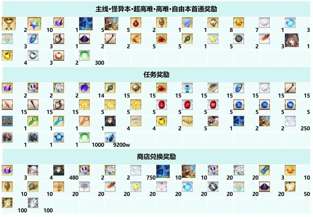 以上是每天开启的关卡顺序,大家可以挑(tiao)选(xuan)自己需求较高的关卡来刷。