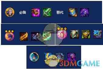 可酷伯和鳄鱼:以肉装为主,可酷伯选择狂徒铠甲、荆棘背心、龙爪;鳄鱼偏向血魔流,如石像鬼石板甲、救赎、离子火花。