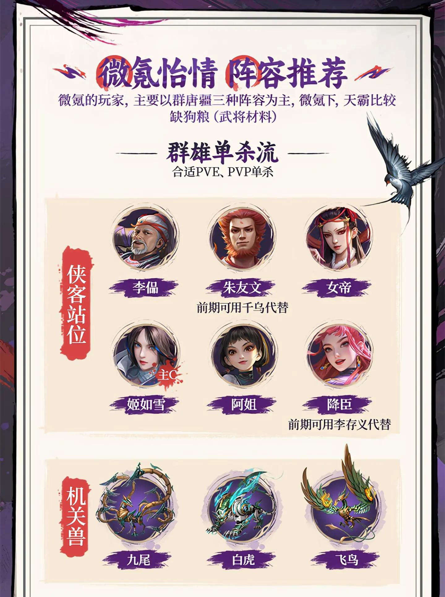 微氪的玩家,主要以群唐疆三(san)种(zhong)阵容为主,微氪下,天霸比較缺狗粮(武(wu)将(jiang)材料)
