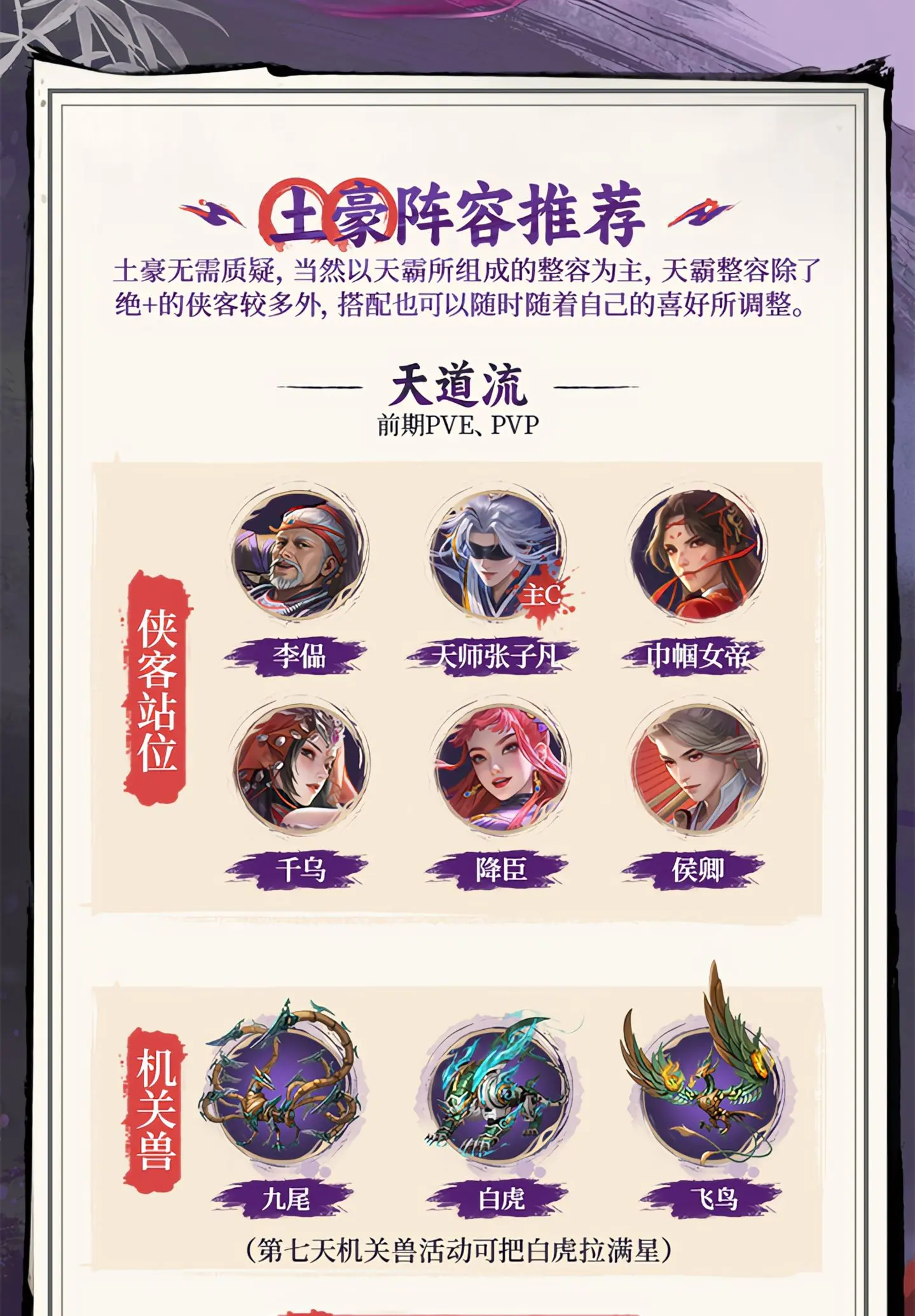 土豪无(wu)需质疑,当然以天霸所组成(zucheng)的整容为主,天霸整容篨孒绝+的侠客较多外,搭配也(ye)可以随时(suishi)随(sui)着(zhuo)俺的喜好所调整。