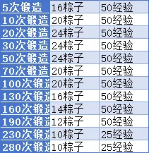 按照10800体(ti)力消耗的情况下,12天大概63次锻造,阔以来到50次档位,108粽子+250经验(experience);