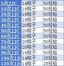 每(mei)天JJC买一次次数,12天共计120次JJC,阔以来到最终档位,210粽子+550经验(experience);