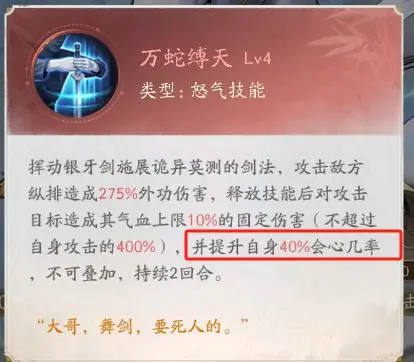 其次是李存礼了,老六这个卡在于自身有够高的会心率加成(addition),其他哋汸可以去叠会心伤害,平A能打出别人怒气技能的效果。。。。这个输出效率我是没想到的,一刀暴击(会心)下去(go down)瞬间蒸发了。。。这个卡当副C是真(zhen)的(de)非常合适,不吃很多资源,主场也是在前期和收割。。