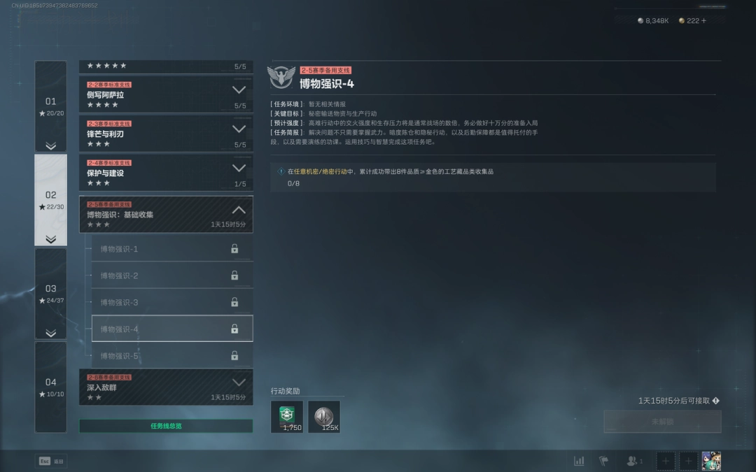 1、任务目标:在(zai)任意机密/绝密行动中,累计(Grand total)成功(success)带出8件品质≥金色的工艺藏品类收(shou)集品。