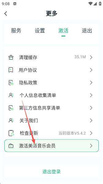 美派音乐app兑换码使用位置打开软件,点击【我的】,点击右上角功能菜单,然后点击【激活】,美派音乐app兑换码使用位置点击【激活会员】,更多精彩内容快来看看下面的具体介绍吧。