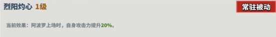 描述:阿波罗上场时,自身攻击力提升20%。