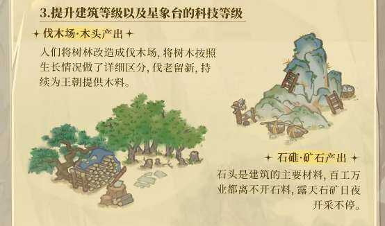 伐木场可以产出木头,而采矿场能产出矿石,木头和矿石可以用来(yonglai)提升(tisheng)法台的科技等级以及建筑等级。