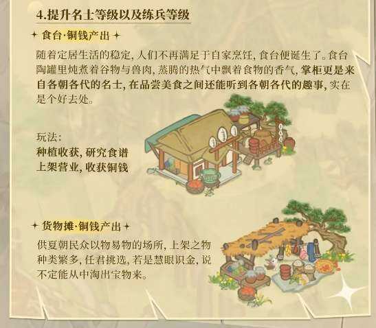 食台是稳定的铜钱产出,大家可以在其中种植(zhongzhi)收获、研(yan)究(jiu)食谱后进行上架经营,以此来获取铜钱。