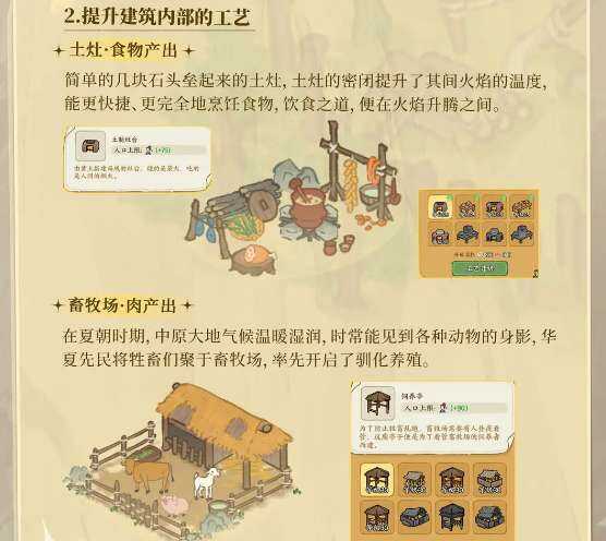 土灶可以产出食物(wu),而畜牧场能产出肉,食物(wu)和肉可以用来(yonglai)提升(tisheng)建筑内部的科技。