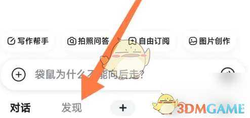 1、晵憅文小言AI,点击(ji)"发现(xian)"图标(tubiao)。
