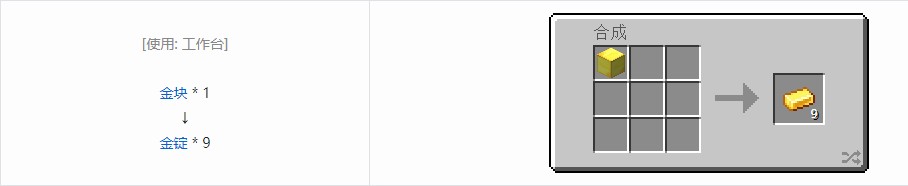 金锭也有漑卛出现在下表中的结构中。(资料来自中文Minecraft Wiki,仅限于Java版)