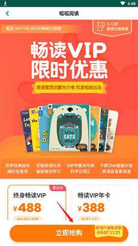 呱呱阅读app会员开通方式在呱呱阅读,你可以成为会员,这样就可以解锁更多功能与福利,进入家长中心,点击“开通VIP”选项,选择终身卡或年卡,下面内容大家快来看看吧。