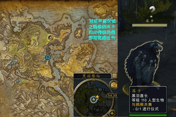 任务过程(guocheng):帮助黑羽鸦熊前进仪式。