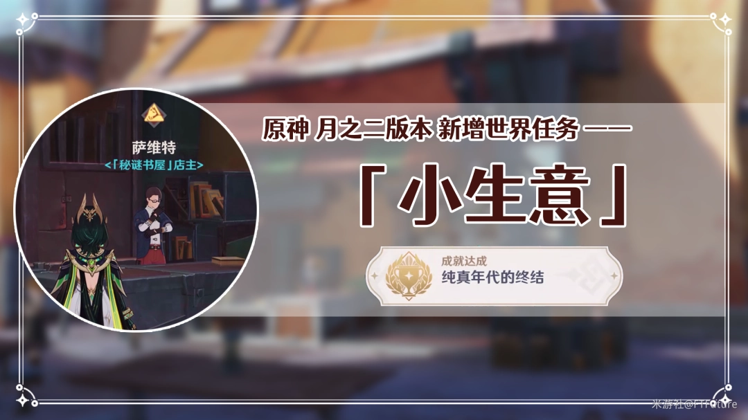 本篇为大家带来的是月之二版本新增(Add)的世界任务「小生意」,完成(wancheng)后可获(huo)得(de)隐藏荿僦「纯真年代的终结」。